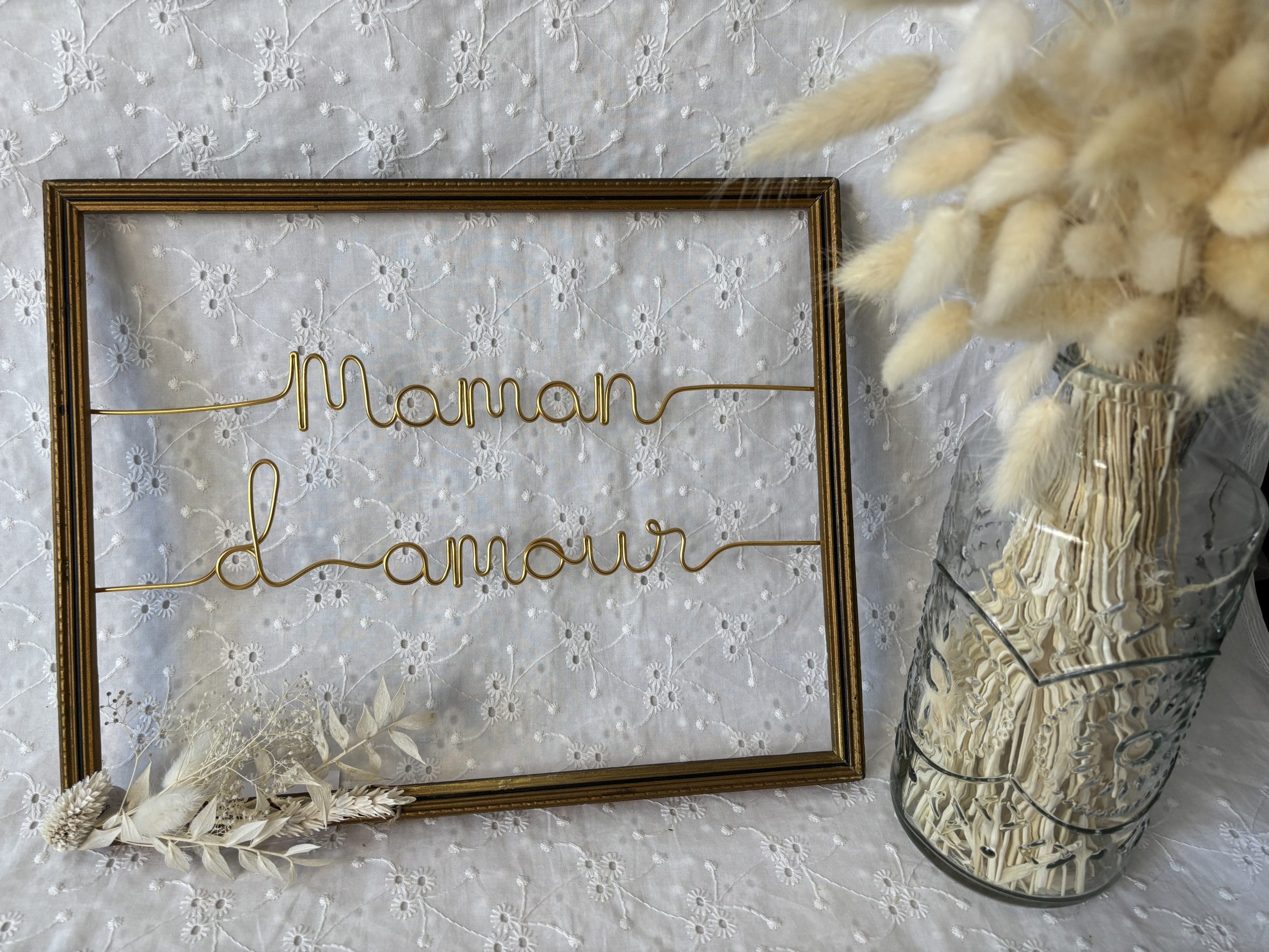 Cadre doré – écriture dorée – décoration florale